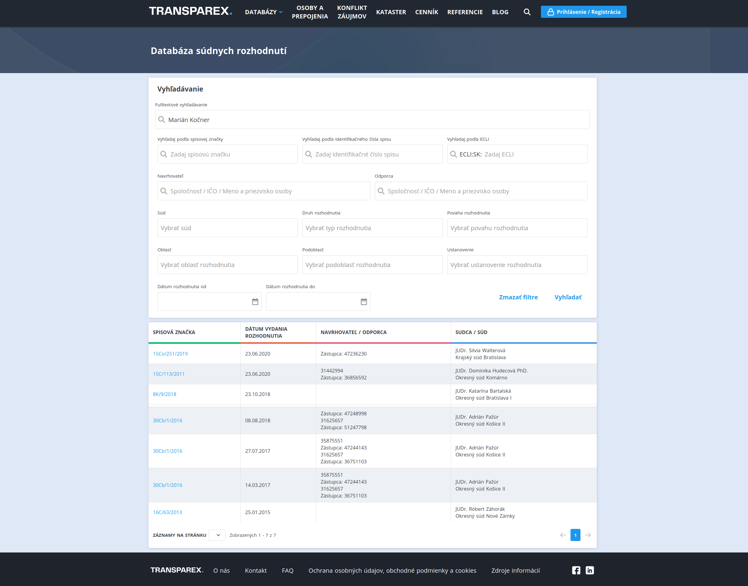 TRANSPAREX®PROFESSIONAL - získate aj informácie o súdnych rozhodnutiach organizácii: